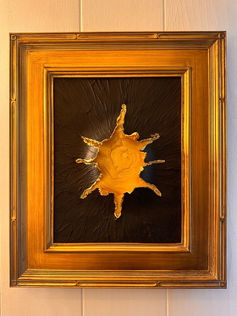 Fueled by this revelation, I set out to create my masterpiece, “Punctured Perception.” The painting came to life, featuring that bold golden hole against a backdrop of darkness. I wanted to invite viewers to bend closer and question everything: was the hole a flaw, or was it an opening to new worlds?