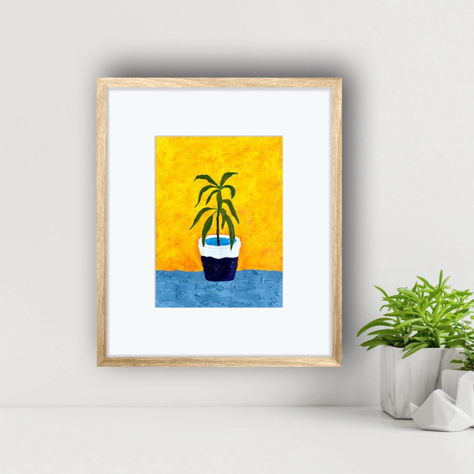 I’m thrilled to share my very first still life painting! The background bursts with vibrant colors, reflecting the energy and passion I poured into this artwork. Among the lively hues, you’ll spot green leaves that symbolize growth and vitality. At the heart of my painting is a small plant that I grew from a seed—a significant achievement for me, as I’ve never before been able to nurture a single seed into a flourishing plant. This piece captures my joy in cultivating it and celebrates nature’s strength and the happiness that creativity brings. Created using a heavy acrylic medium on 9×12 paper, it was completed in 2022. I’m proud of this initial attempt at still life and believe it turned out quite well!