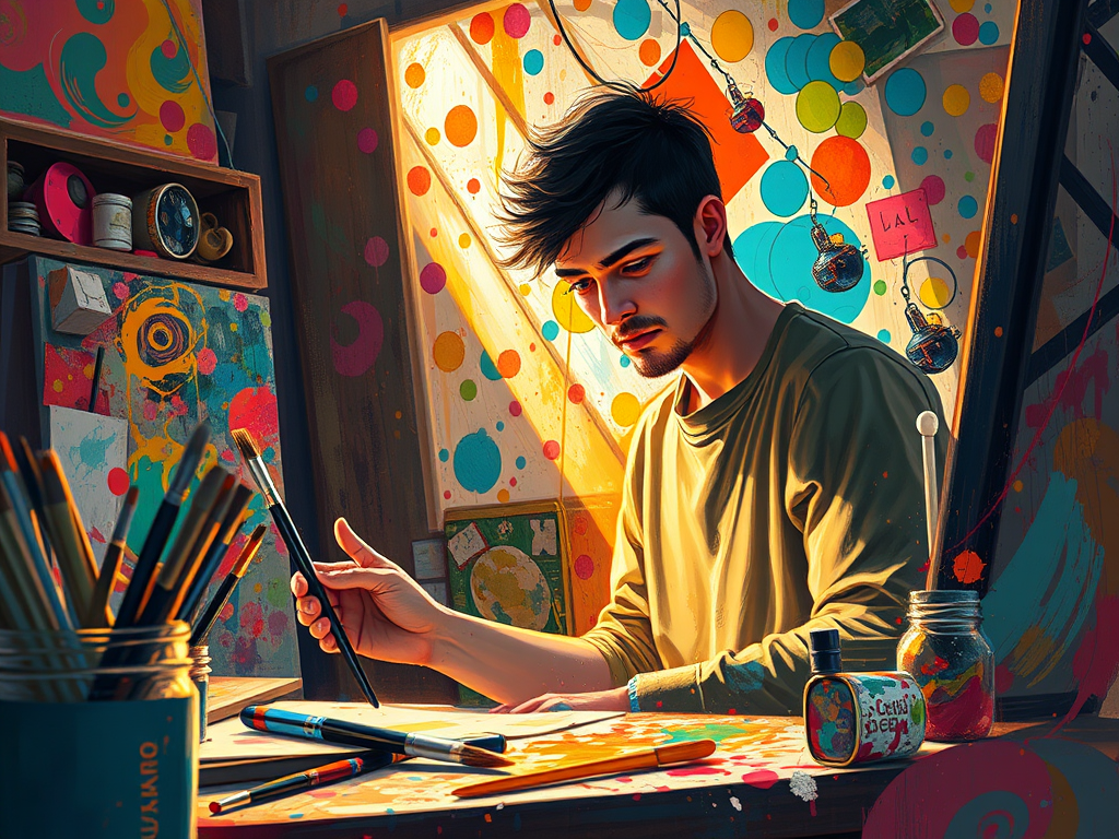 Today in the studio, the vibe was totally different. The air was buzzing with energy, and guess what? Inspiration—the kind we all chase—decided to drop by! I couldn’t help but dive in and start working on a new piece. Imagine a kaleidoscope of bright colors and swirling shapes. It’s chaotic and beautiful, just like life!
