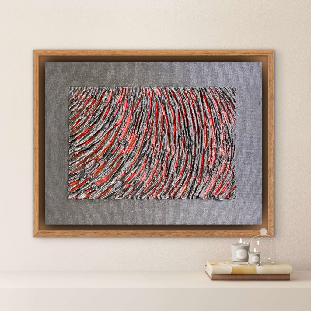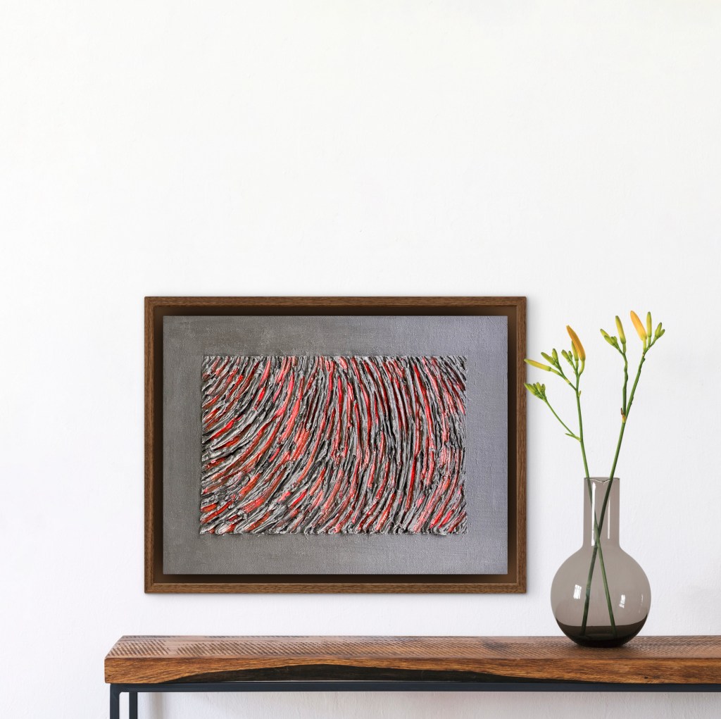 For this painting, I decided to get a little creative by using plaster and acrylics on a 12 x 16 canvas board. It’s a fun combination because it really lets me play with texture and depth. The plaster gives it a nice tactile feel, while the acrylics bring that vibrant shine. Every brush stroke was made with purpose, trying to mimic how lava would actually look. The glossy surfaces reflect light beautifully, much like when molten lava cools down. I hope that when people look at it, they feel that connection to the piece.